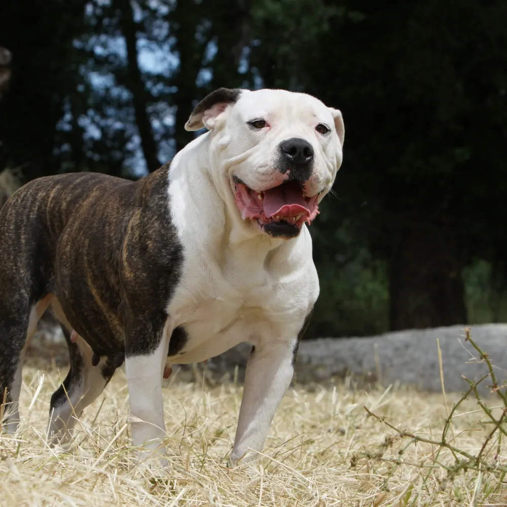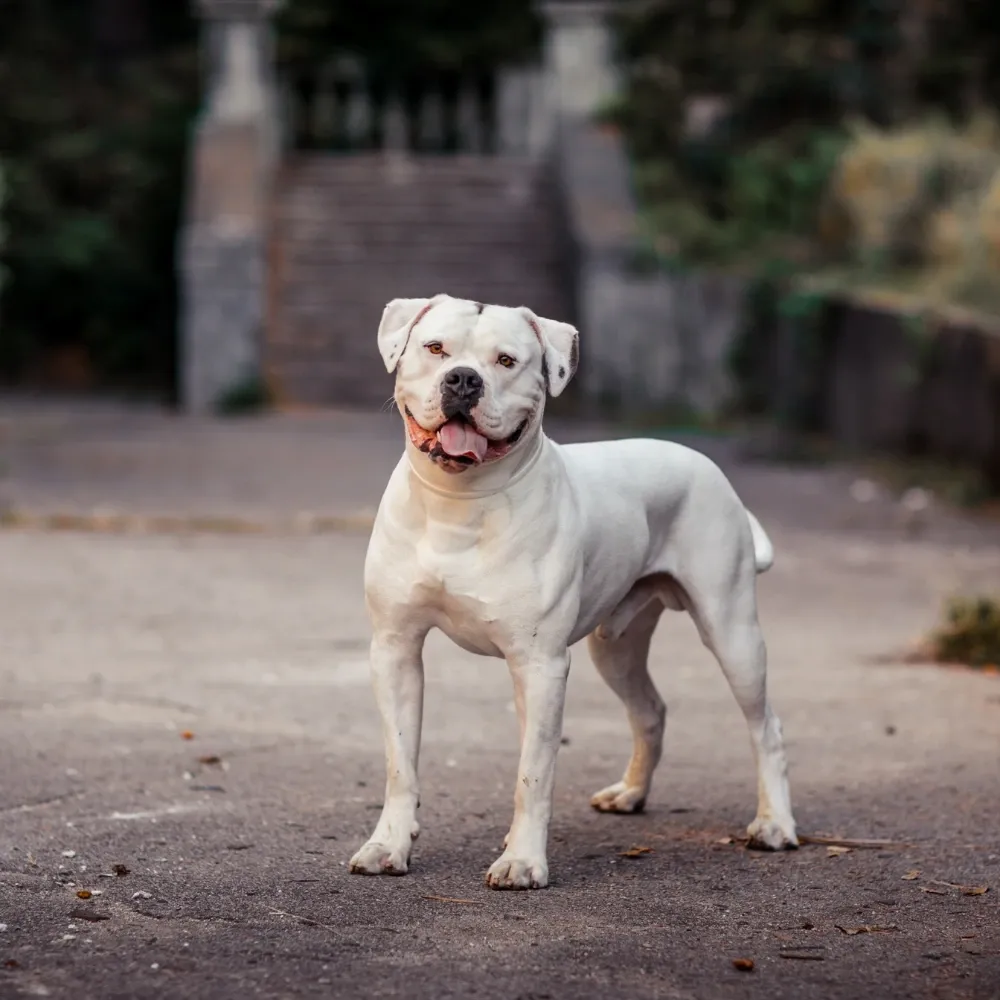 Embora muitos confundam, o Bulldog Americano é maior, mais musculoso e tem histórico voltado ao trabalho e à guarda.