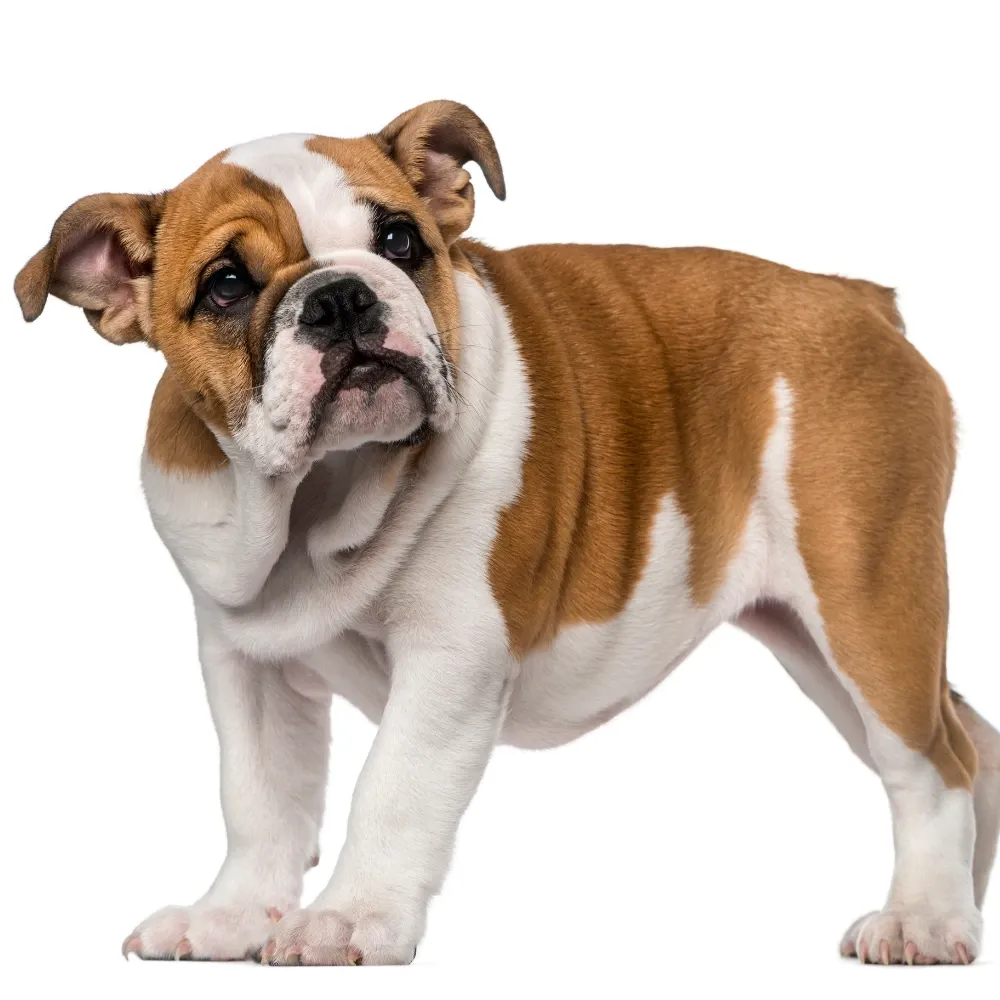 Devido à sua estrutura robusta e coluna comprimida, o Bulldog Inglês é propenso a problemas de coluna, displasia e hérnias.