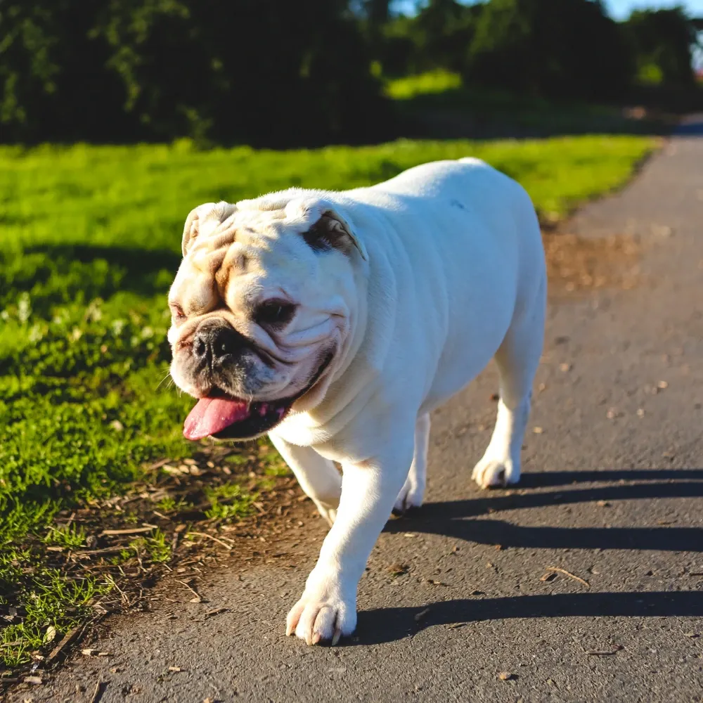 Por conta de sua estrutura baixa e robusta, é essencial que o Bulldog Inglês mantenha um peso saudável. A raça adora comer, mas essa característica aumenta a tendência ao sobrepeso, problema que precisa ser prevenido para garantir qualidade de vida.