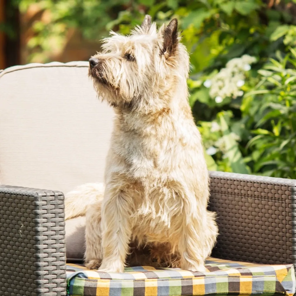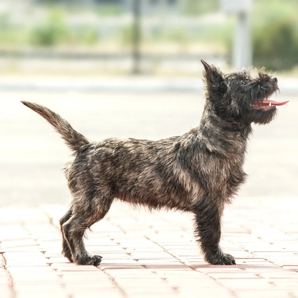 O Cairn Terrier é um cão de pelo áspero, focinho curto e porte pequeno, conhecido por sua expressão viva e energia quase inesgotável — marca registrada dos terriers!