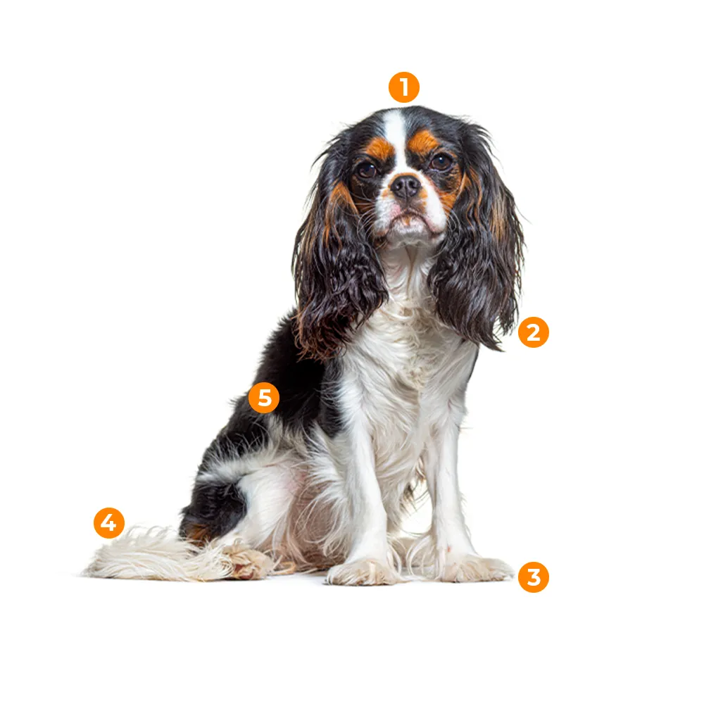 Os antipulgas e carrapaticidas também podem ser escolhidos com ajuda de um profissional, que saberá indicar os produtos mais adequados ao porte e estilo de vida de cada Cavalier.