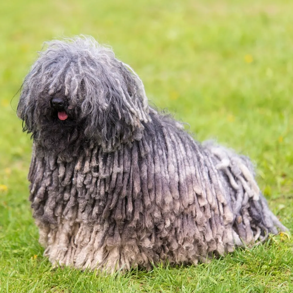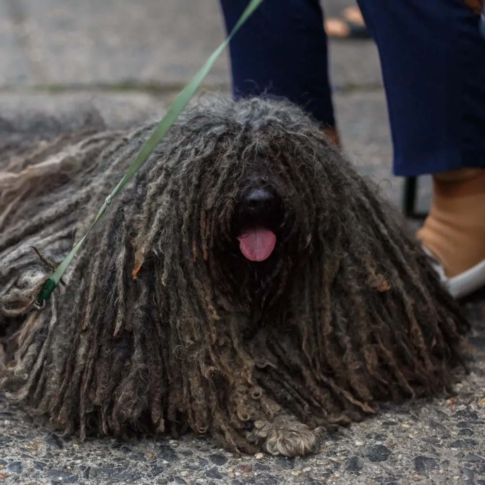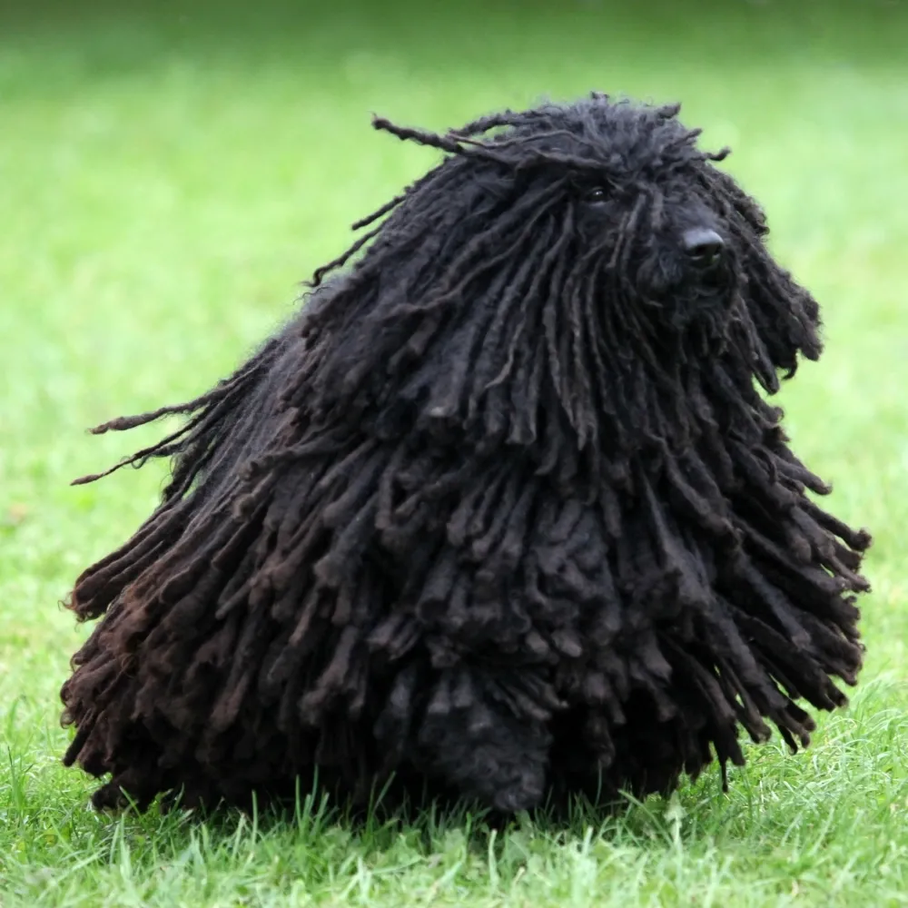 A pelagem encordoada do Puli é parte de sua identidade e funciona como um isolante natural, protegendo o cão tanto do frio quanto do calor.