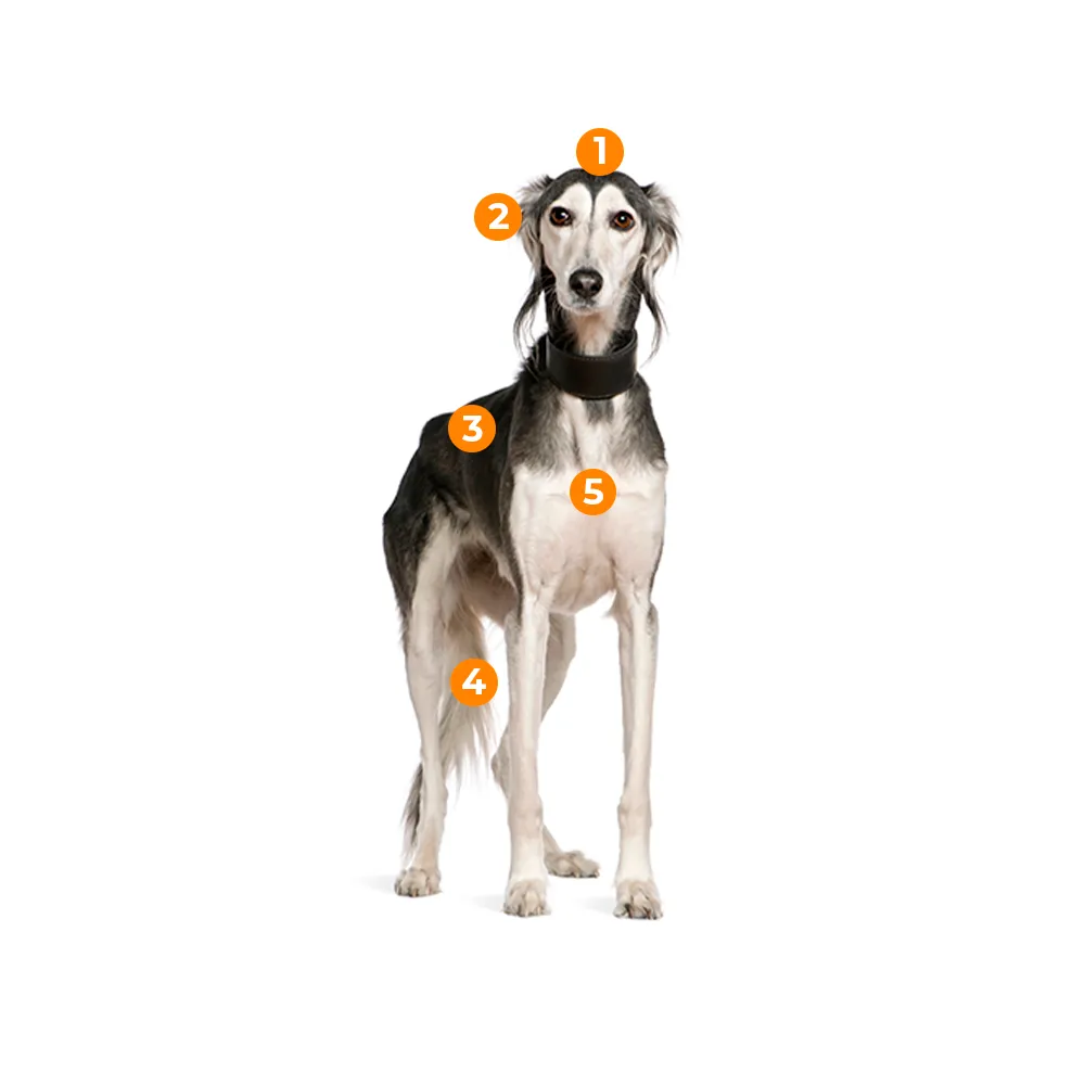 O Saluki é um cão tranquilo, mas que precisa de uma rotina ativa e muitos passeios ao ar livre no dia a dia — o cenário ideal para o contato com parasitas externos e internos.