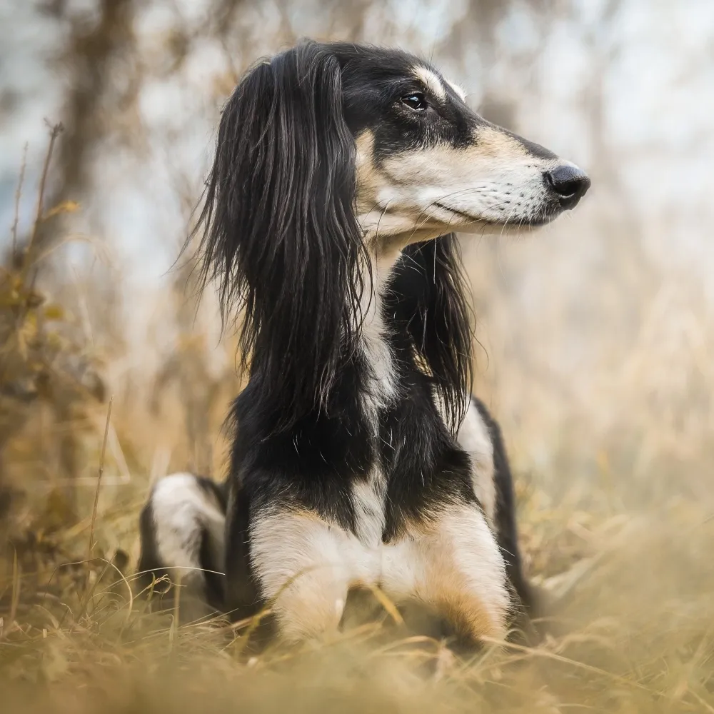 Criado para perseguir presas no deserto, o Saluki ainda conserva um forte instinto de caça e um talento impressionante para corridas — e fugas!
